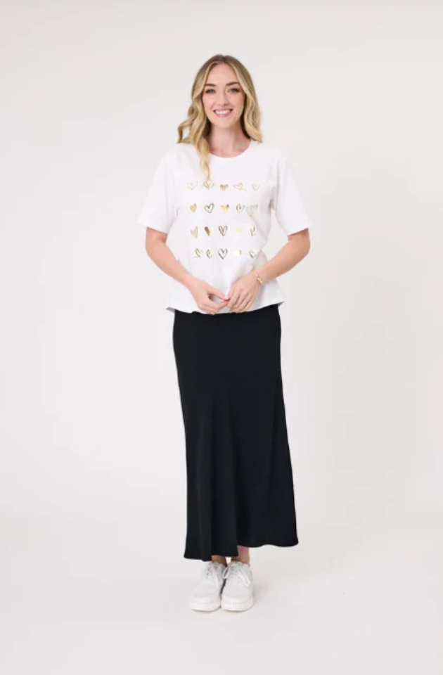 • Available in white, black, and pink with playful gold foil heart detailing.