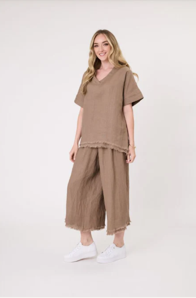 LEMON TREE DESIGN - CAROLA LINEN TOP - MOCHA - 271LTDSS25
