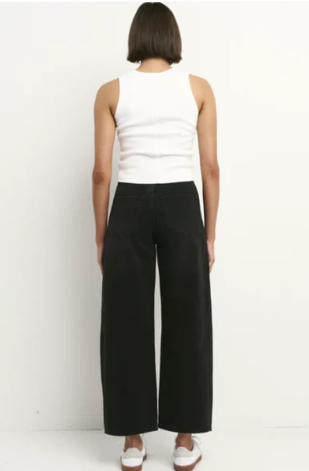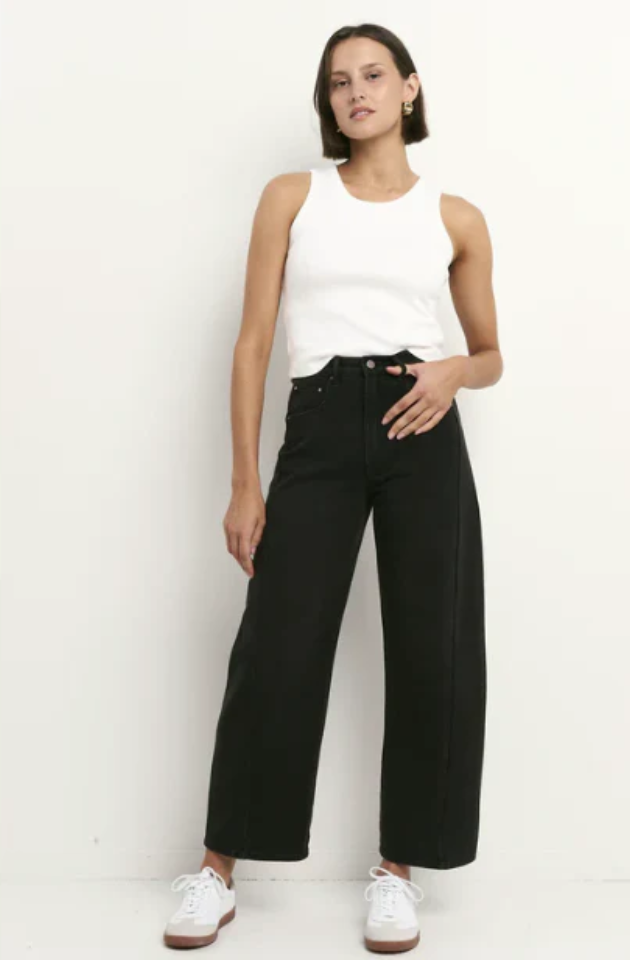 The much anticipated Varsity Black Wash Jean is your go-to for cool, confident dressing with a polished twist. Cut in a flattering mid rise with a barrel leg, gentle tapering to the ankle and slightly cropped length, these jeans are the epitome of relaxed chic. Crafted in washed black denim that gets better with age, they’re made to pair effortlessly with everything from tanks and tees to blazers and boots.