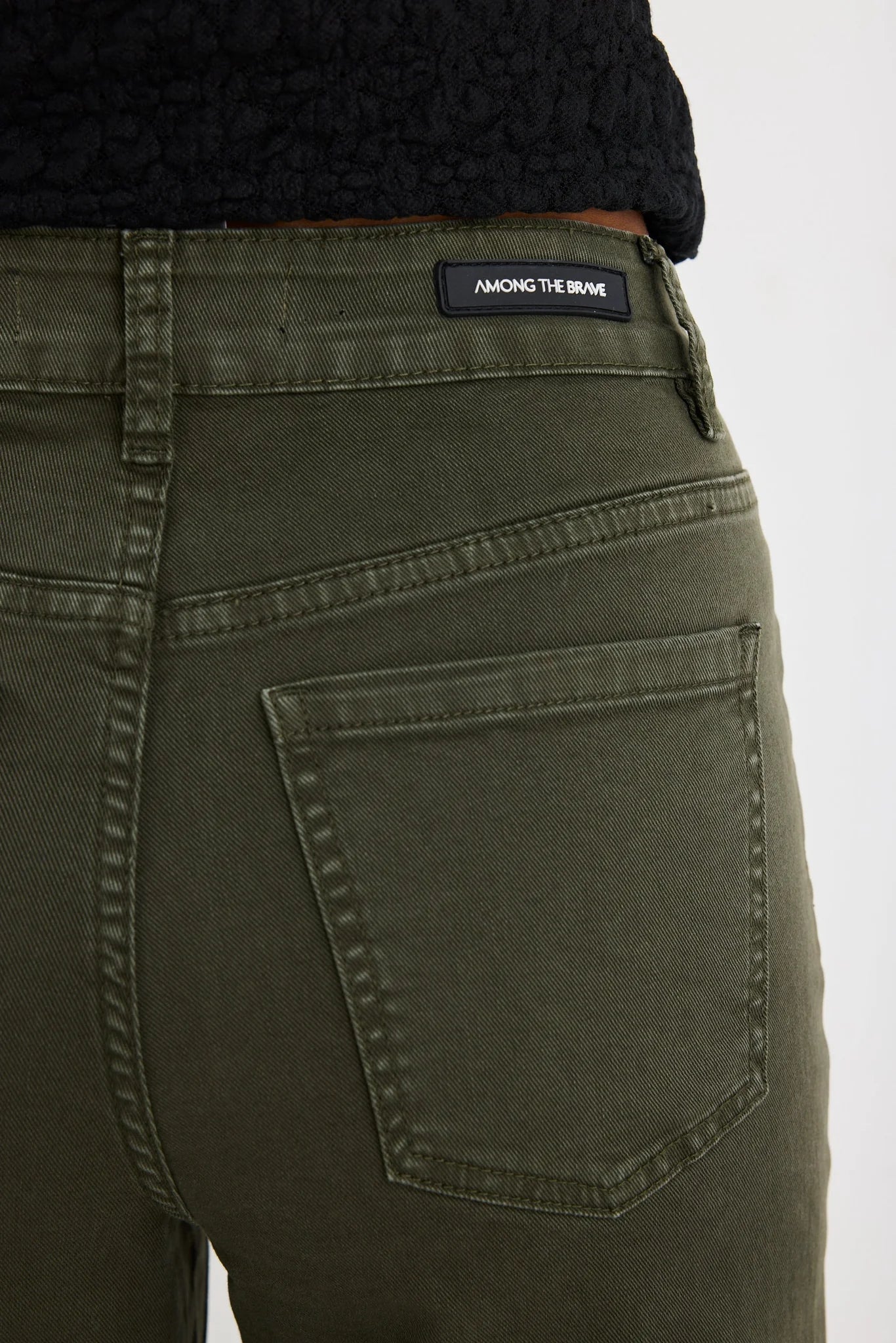 AMONG THE BRAVE - ZOEY HIGH RISE JEAN - DARK KHAKI