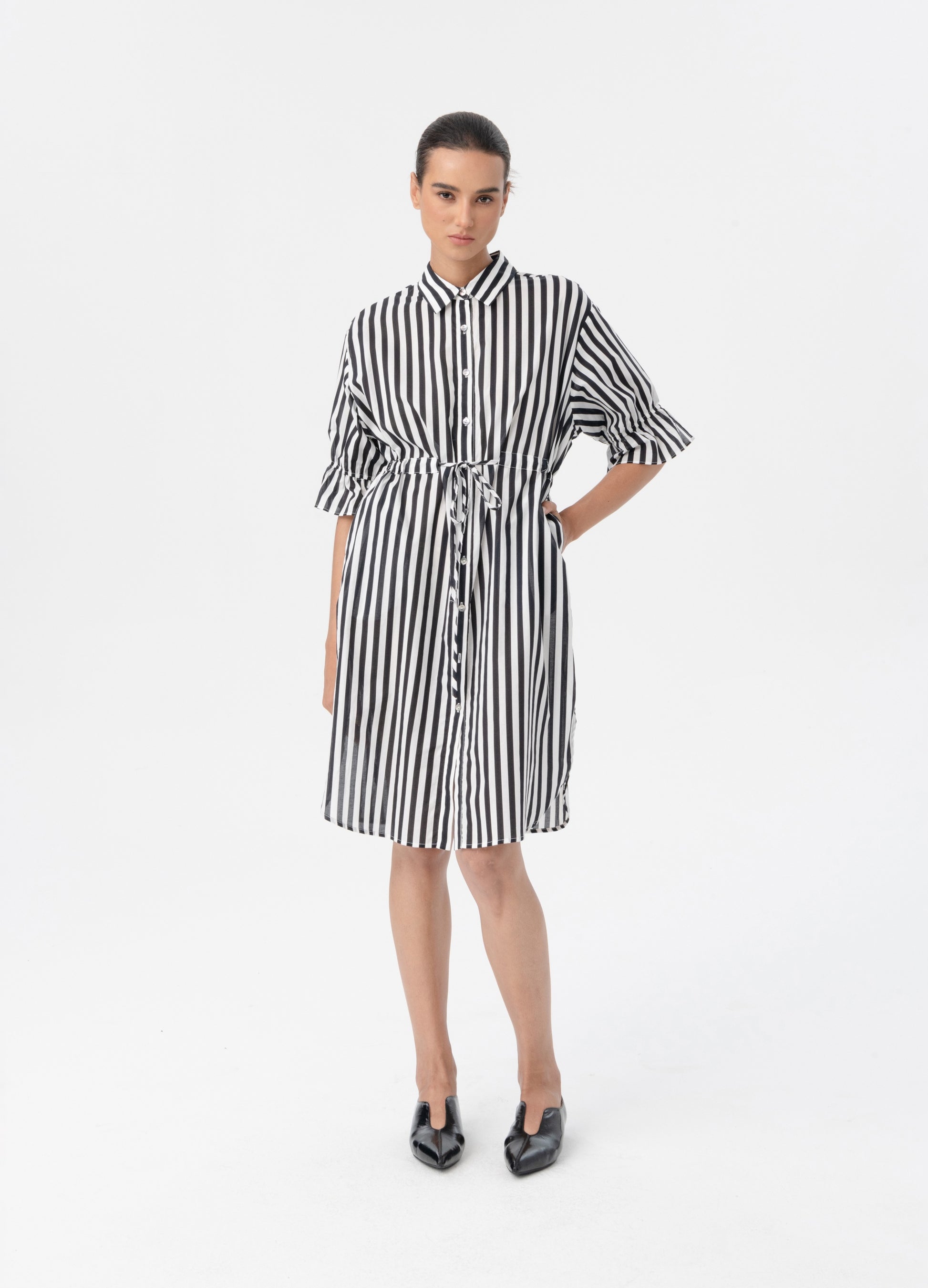 BLACKLIST VENA SHIRT DRESS - BLACK STRIPE