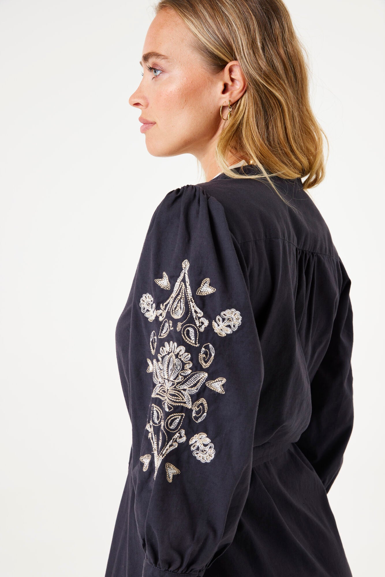 Embroidered dress. This dress is a great basic piece with a fashionable touch.