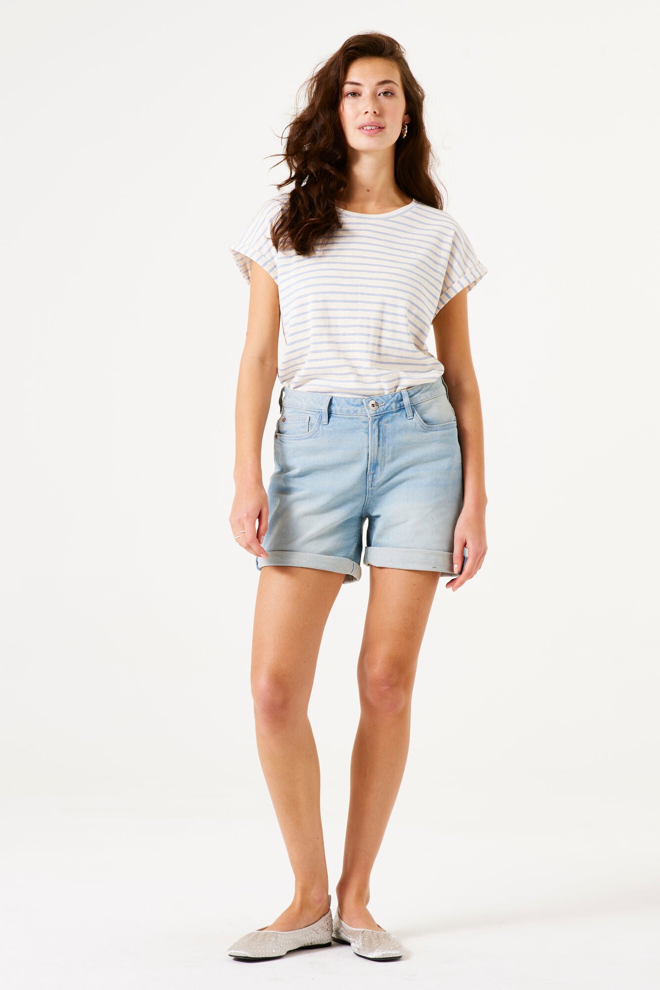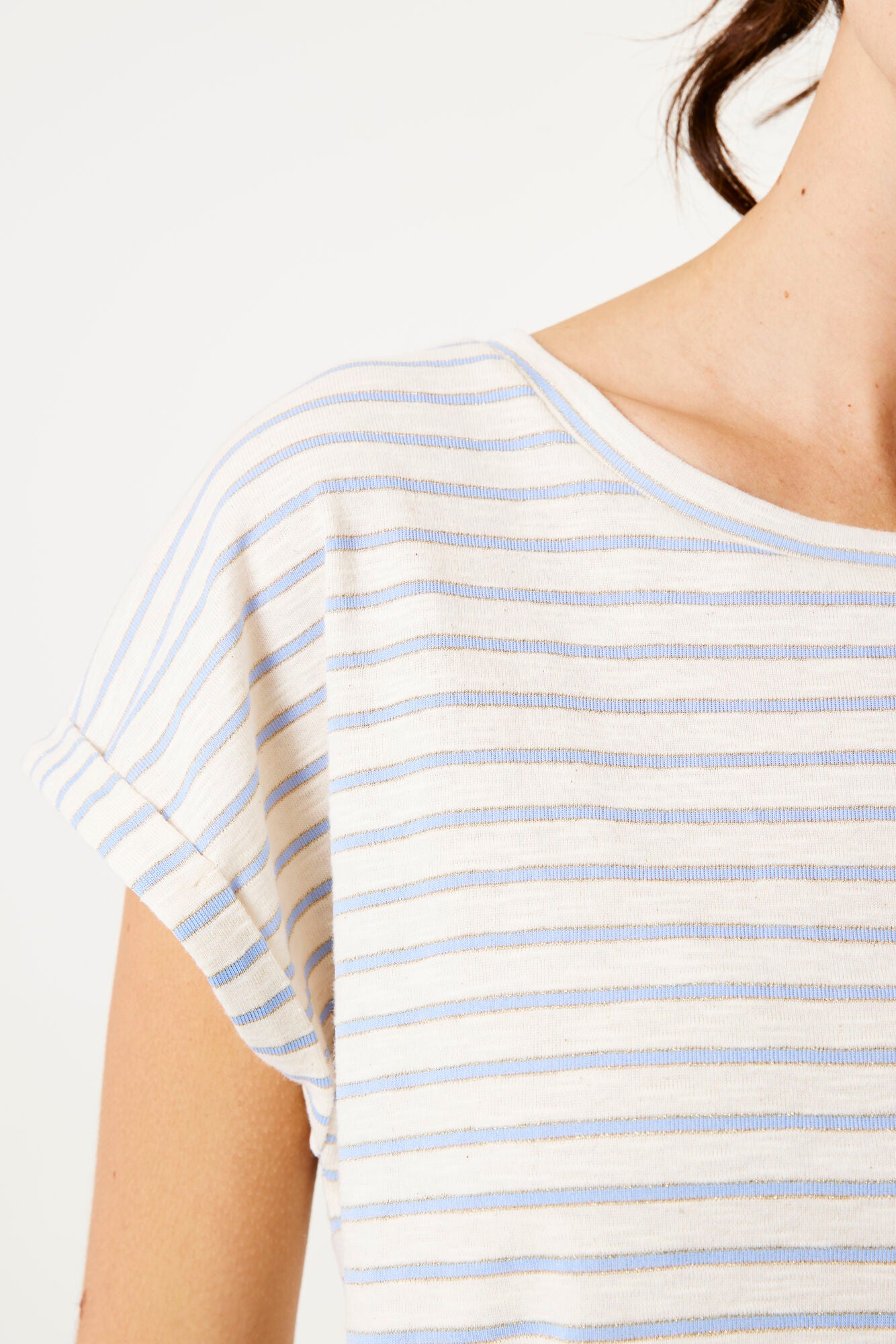 T-shirt with a striped pattern. This versatile piece offers endless combination possibilities.